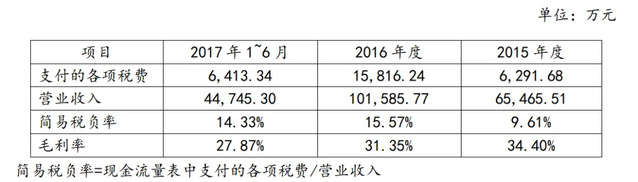 这样的税负率远超同行,上市公司长盈精密用简易方式计算的税负率在2015~2017年分别为6.21%、4.45%、5.46%。从数据来看,龙昕科技的税负率超过长盈精密一倍,在制造业,这是不可想象的数据。