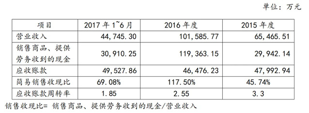 2015年,销售商品、提供劳务收到的现金远低于当年的营业收入,而2016年销售收现比又高达117.5%。